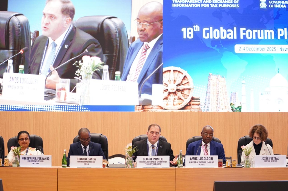 Η ΑΑΔΕ συμμετείχε στην 18η Ολομέλεια του Παγκόσμιου Φορουμ για τη Φορολογική Διαφάνεια και την Ανταλλαγή Πληροφοριών του ΟΟΣΑ, που διεξάγεται αυτές τις ημέρες στο Νέο Δελχί της Ινδίας.