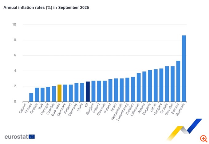 capital.gr Στο 2,2% ο ετήσιος πληθωρισμός στην Ευρωζώνη τον Σεπτέμβριο – Στο 1,8% η Ελλάδα 17/10/2025 Δεν υπάρχουν Σχόλια